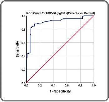 The results of the receiver operating curve (ROC) and area under the curve (AUC) analysis for HSP-90 are presented in Table 4 and Figure 3.