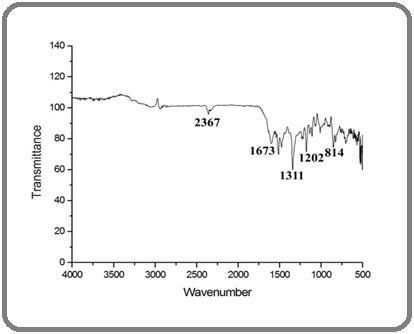 Figure 1. FTIR Spectrum of the Sample Showing Characteristic Absorption Bands at 2367 cm⁻¹ (C≡C stretching/CO₂ interference), 1673 cm⁻¹ (C=O stretching), 1311 cm⁻¹ (C–N stretching of amide), 1202 cm⁻¹ (C–O stretching), and 814 cm⁻¹ (C–H bending), confirming the presence of functional groups associated with the material.