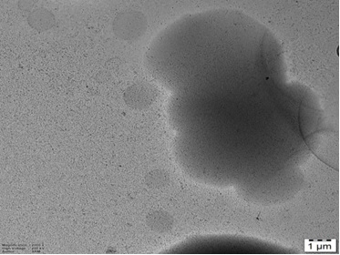 Figure 2. SEM Image Showing the Morphology of the Sample with Well-dispersed Spherical and Semi-transparent Nanostructures; Scale bar Represents 1 µm.