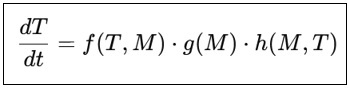 Example function: h(M,T)=α2.M.e−γ.T, where α2 is the rate constant by which microbial influence affects tumour growth, and γ is the inhibition rate constant of microbial activity with tumour size and weight.