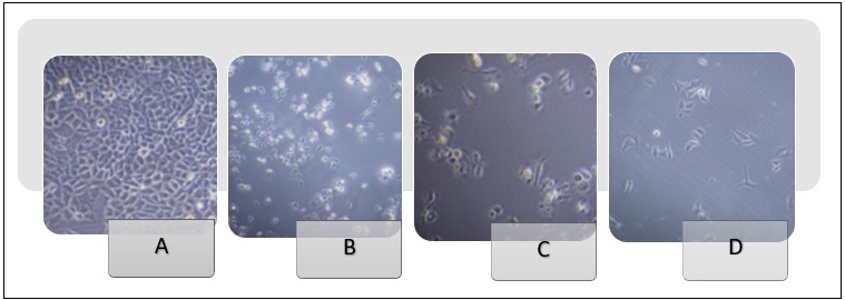 Ciprofloxacin exhibited cytotoxic effects on cervical cancer cells, inhibiting cellular proliferation, which intensified with higher concentrations of ciprofloxacin and more extended incubation periods. The latter factor has a more pronounced effect on growth inhibition than concentration. The decline in the IC50 level between each incubation period indicated a time-dependent manner of growth inhibition (Table 2).