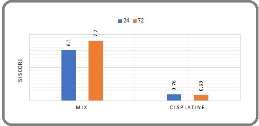 From a safety standpoint, the drug concentrations in the mixture that induce cytotoxicity are lower than those used individually, indicating that the mixture is relatively safe regarding the occurrence of its side effects.