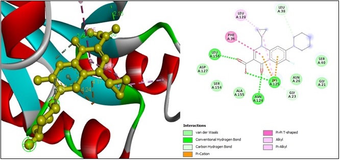 Likewise, the other mixture component, “ciprofloxacin,” has demonstrated anticancer properties highlighted by numerous earlier studies. A recent investigation into the repurposing of this fluoroquinolone antibiotic has revealed its potential as an anticancer agent, underscoring its capacity to affect cellular pathways crucial for tumor growth. Typically prescribed for bacterial infections, the drug’s inhibition of DNA gyrase and topoisomerase IV in prokaryotes has sparked interest in its effects on eukaryotic topoisomerases, which are frequently overexpressed in cancer cells to support rapid growth. In vitro research has shown that ciprofloxacin can induce apoptosis and cause cell cycle arrest in various cancer cell lines. Specifically, studies on colorectal cancer cells (HCT-116) indicated that ciprofloxacin (at concentrations of 50–100 μM) activates caspase-3 and downregulates cyclin D1, leading to G1 phase arrest and apoptosis [26-31]. Similarly, in non-small cell lung cancer (cells from A549), ciprofloxacin inhibited metastasis by decreasing epithelial-mesenchymal transition (EMT) through modulation of the TGF-β/Smad3 pathway [32, 33]. Animal models support these findings. A 2023 study utilizing xenograft mice with triple-negative breast cancer (MDA-MB-231 cells) demonstrated that a daily dose of ciprofloxacin (20 mg/kg) lowered tumor growth by 40% through ROS-mediated DNA damage and p53 activation upregulation [34].