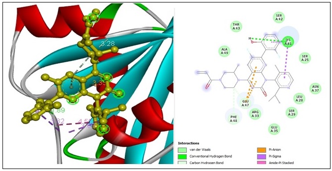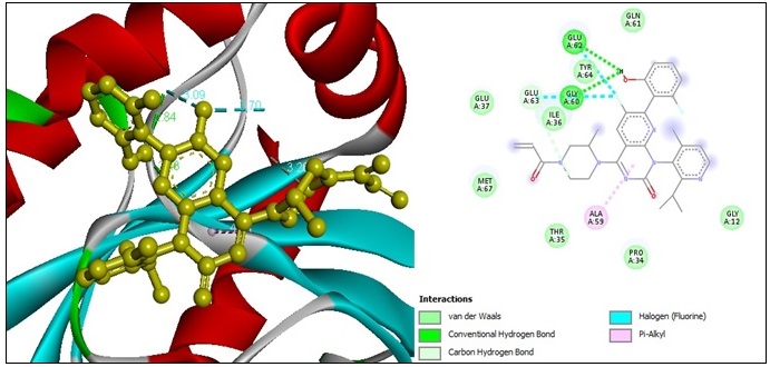 Due to their crucial roles in cancer, ERK2 and RAS kinase signaling proteins are positioned as promising targets for effective cancer treatment therapies. Several trials have been carried out to identify ERK2 inhibitors, such as Ulixertinib [45], Temuterkib [46] and MK-8353 [47]. Furthermore, various initiatives were undertaken to identify an agent that can target the RAS kinase protein. Such as Sotorasib [48], Adagrasib [49] and GDC-6036 [50].