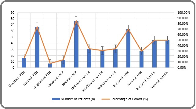 Figure 1. Prevalence of Abnormal Bone and Inflammatory Parameters in the CML Cohort (n=90).