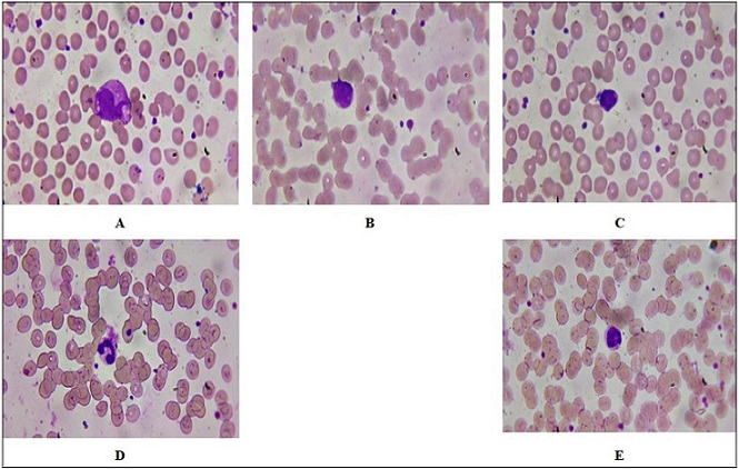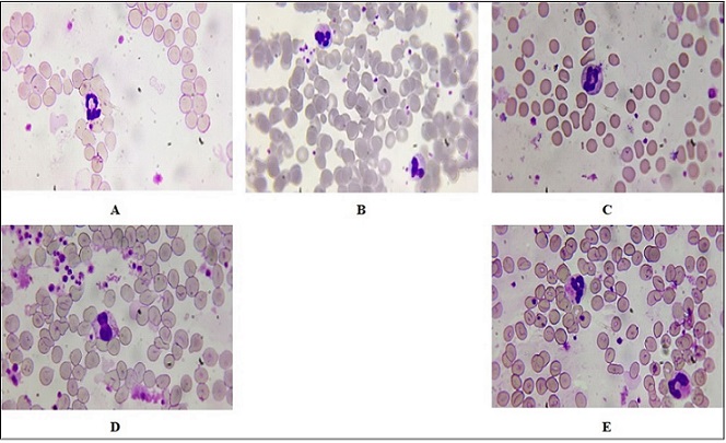 Following preparation, the stained blood smears were examined under a light microscope with appropriate magnification (typically ×1000). The following hematological values were quantified: