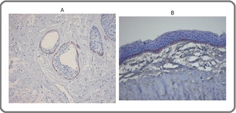 Figure 4. Integrin β-1 Expression in Odontogenic Lesions (IHC). A Ameloblastoma showing weak, discontinuous basal-layer integrin-β1expression. B Keratocystic odontogenic tumor demonstrating continuous basal-layer integrin-β1positivity.